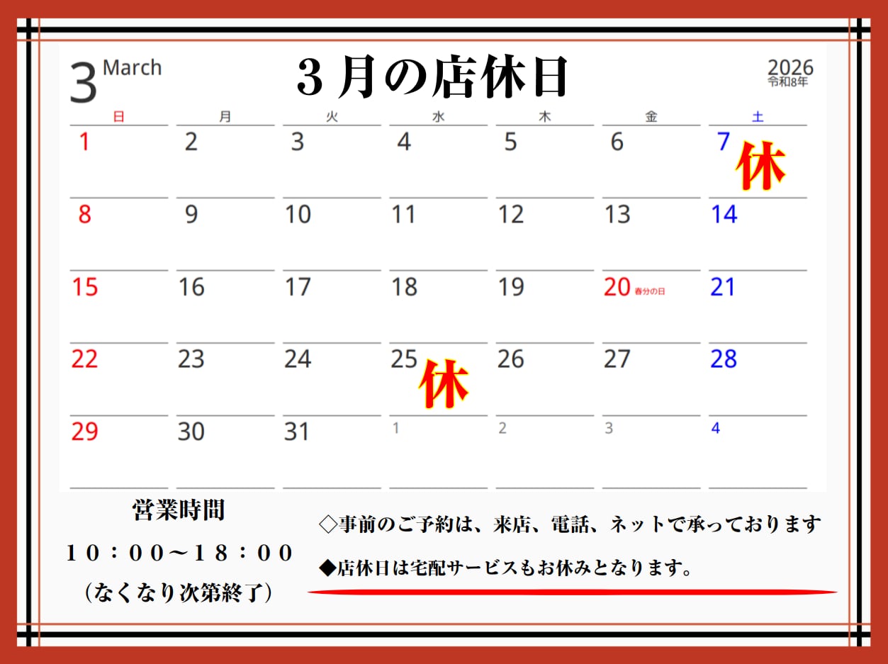 【テイクアウト予約方法について】 店頭でのお受け取りをご希望の方は、テイクアウト予約サイト【下記のVIEW MOREをクリック!】から事前予約を承っております。予約限定商品もございますので、是非ご利用ください。 【注意事項】 ※PCからはご利用いただけません。スマートフォンをご利用ください。 ※テイクアウト予約サイトからの当日予約は不可となっております。店頭販売分のお取り置きは店舗(03-5828-3787)までお電話ください。